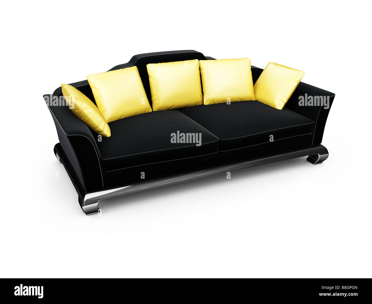 3d Living Room Scene Of Black Sofa With Yellow Square Pillows