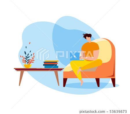 Cartoon Man Sit Couch With Notebook Freelancer Buy This Stock