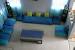 Living Room Blue Sofa And Hexagonal Marble Side Tables Grey