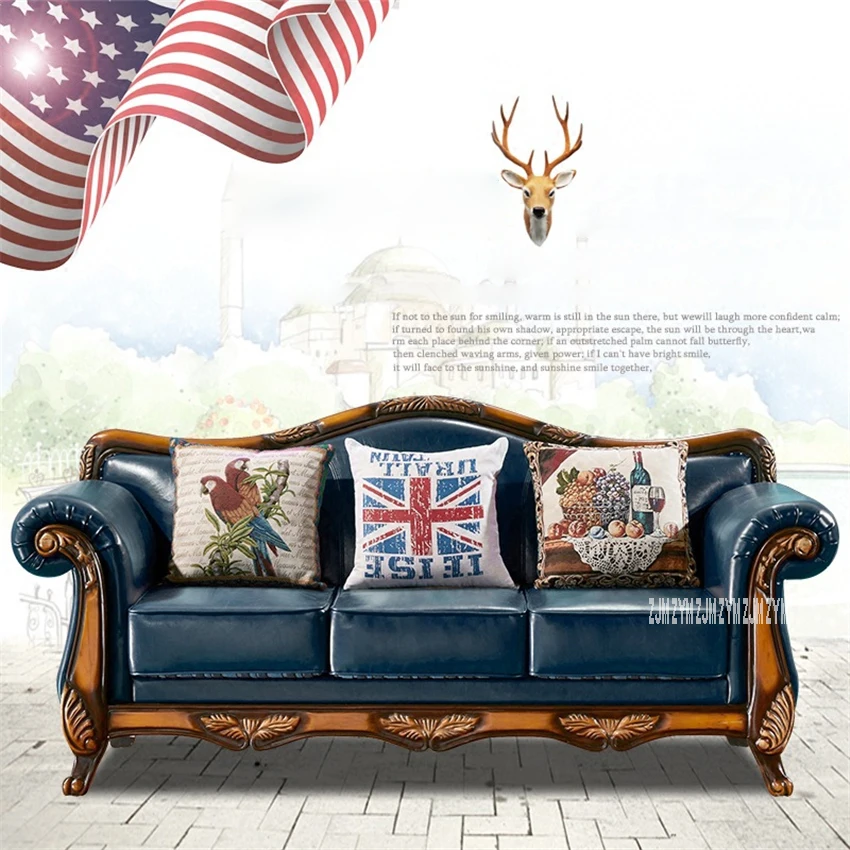 China American Retro Leather Sofa Combination Ou Completely Real