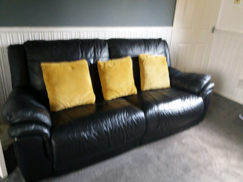 Black Leather Sofa And Leather Arm Chair With Yellow Grey And